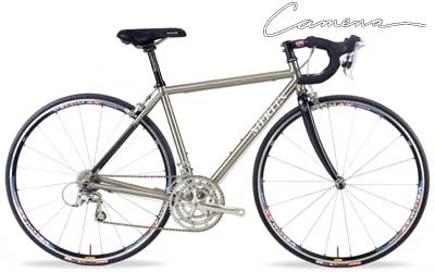 Merlin haven't been this excited about a new bike since they rolled out the first Newsboy back in 1994. The new Camena is the first Merlin designed specifically with a woman's body in mind. The Camena's body is centered on a shorter top tube that slopes, creating a smaller cockpit space for women, who ususally have shorter arms and a shorter upper body than men. Merlin have gone to great lengths to make sure that they dialed in the overall geometry to insure the optimal performance of the bike. Merlin truly hope women cycists everywhere will share in their excitement for this bike. |